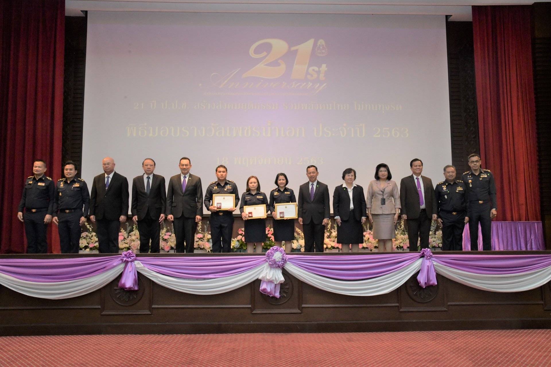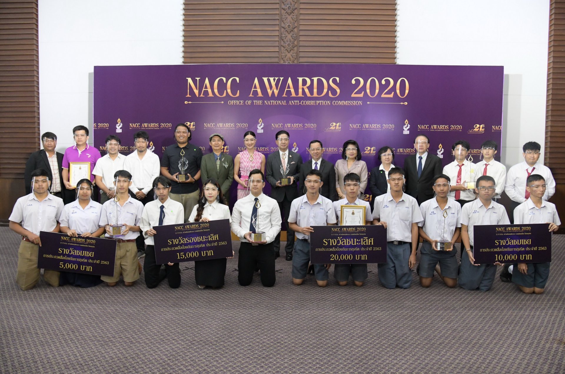 วันที่ 18 พฤศจิกายน 2563 เวลา 14.00 น. ณ สำนักงาน ป.ป.ช. (สนามบินน้ำ) จังหวัดนนทบุรี ได้มีพิธีมอบรางวัล “NACC Awards 2020” เนื่องในโอกาสครบรอบ 21 ปี สำนักงาน ป.ป.ช. ดังนี้