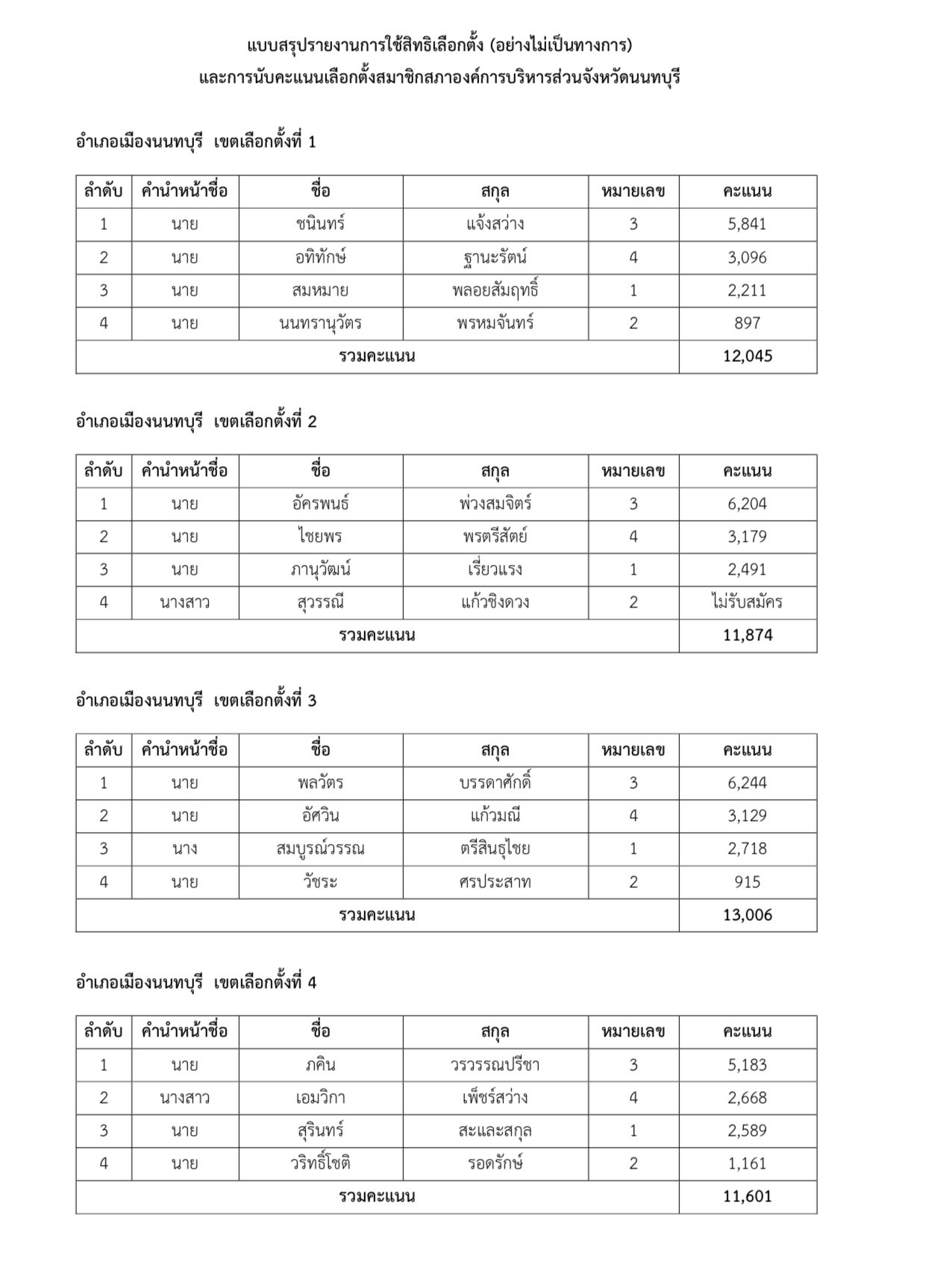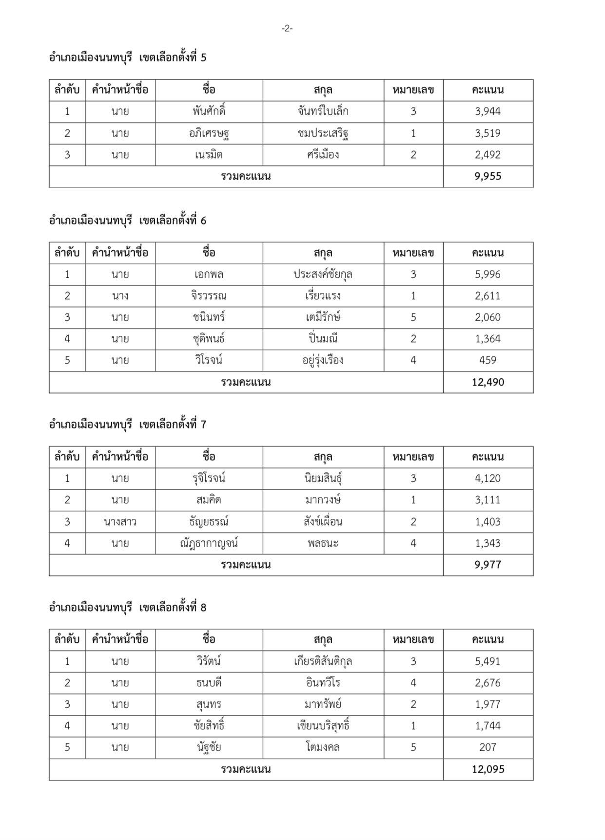 ที่มา : สำนักงานคณะกรรมการการเลือกตั้งประจำจังหวัดนนทบุรี