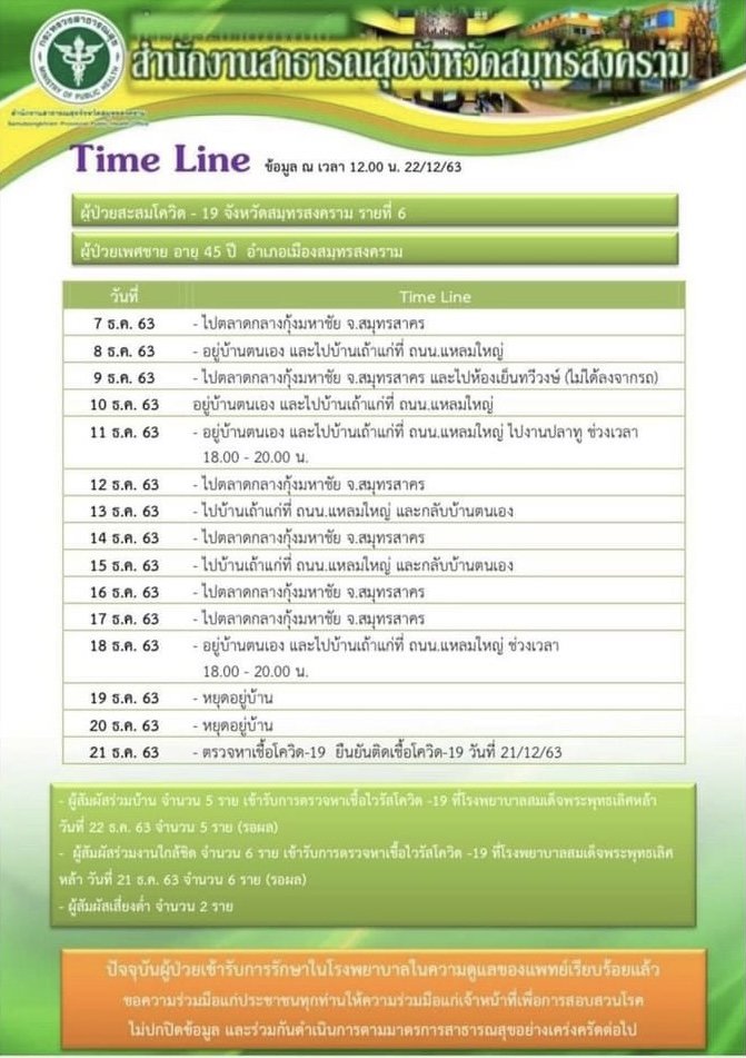 ผู้ป่วยชายอายุ 45 ปี อยู่ที่ อ.เมืองสมุทรสงคราม ประวัติเดินทางไปตลาดกลางกุ้งมหาชัย จ.สมุทรสาคร และไปงานปลาทู