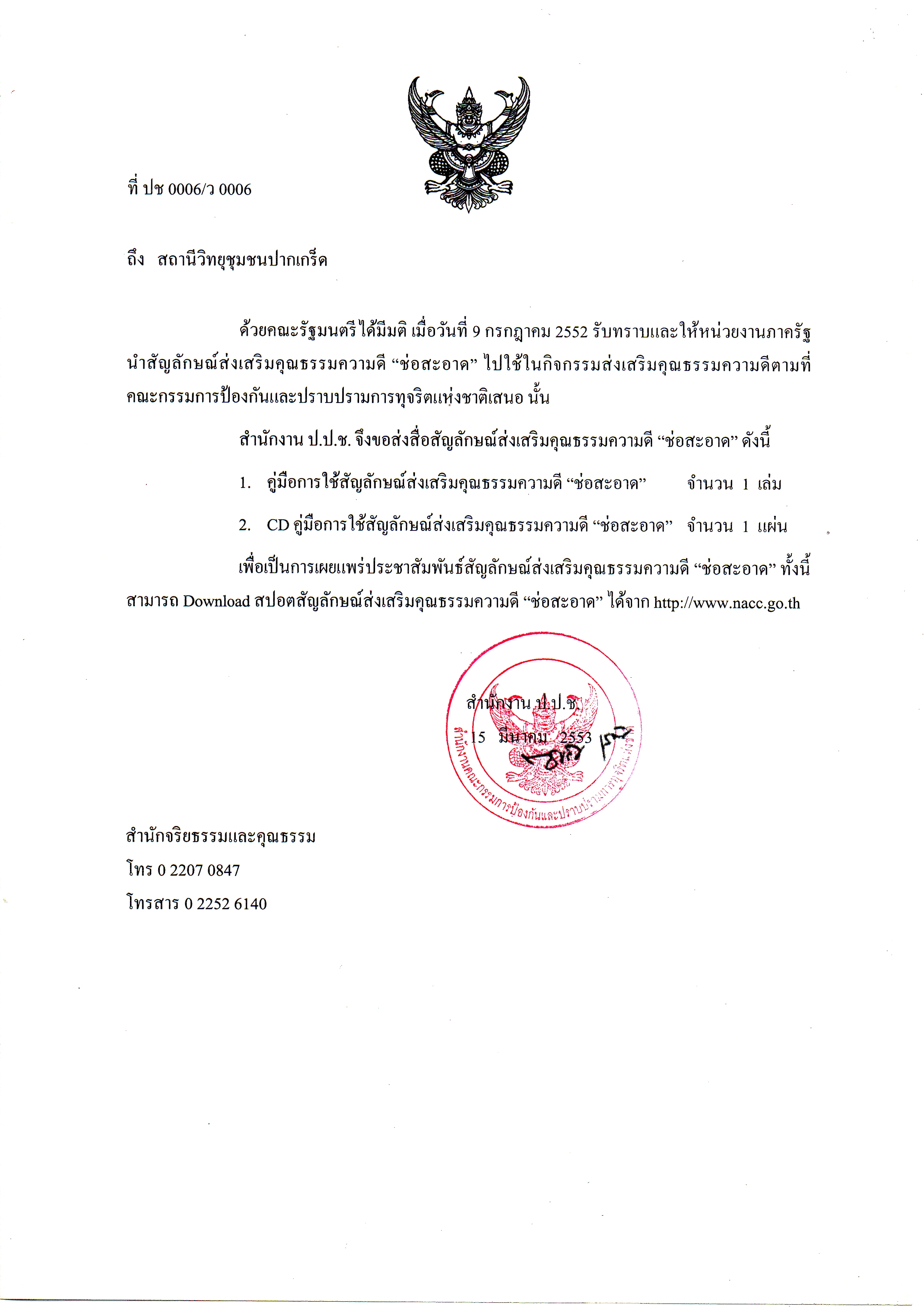 คู่มือการใช้สัญลักษณ์ส่งเสริมคุณธรรมความดี "ช่อสะอาด"