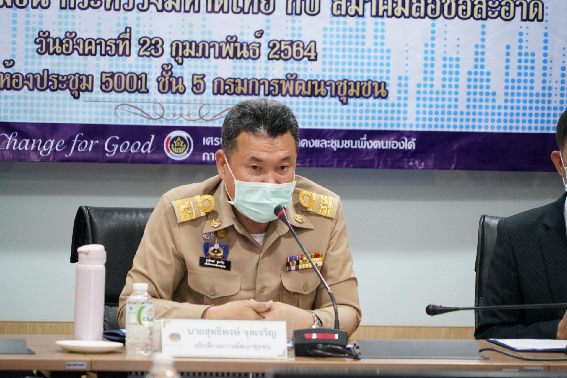 นายสุทธิพงษ์ จุลเจริญ อธิบดีกรมการพัฒนาชุมชน กล่าวว่า ขอขอบพระคุณสมาคมสื่อช่อสะอาด และทีมงานที่ได้กรุณาเอื้อเฟื้อ ช่วยเหลือ บูรณาการเผยแพร่ข้อมูลข่าวสารของกรมการพัฒนาชุมชน กระทรวงมหาดไทย ซึ่งมีบทบาทภารกิจ หน้าที่ ในการดำเนินการเพื่อประโยชน์สุขของพี่น้องประชาชน การประชาสัมพันธ์มิใช่เพียงแต่ให้ข้อมูลว่ากรมการพัฒนาชุมชน ปฏิบัติงานอย่างนั้นอย่างนี้ ดีอย่างนั้นอย่างนี้ ก็จะไม่ครบวงรอบของกระบวนการทำงาน ในการนี้ ต้องขอความกรุณา สมาคมสื่อช่อสะอาดและภาคีเครือข่าย สามารถช่วยเหลือในการเป็นภาพสะท้อน (Feedback) ข้อเสนอแนะ คำแนะนำ การแสดงความคิดเห็น ทั้งจากสมาชิกสมาคมสื่อช่อสะอาดหรือจากพี่น้องประชาชน ให้กรมการพัฒนาชุมชนได้รับรู้รับทราบ เพื่อสามารถการทำงานให้ดีเพิ่มมากขึ้นในโอกาสต่อไปด้วย