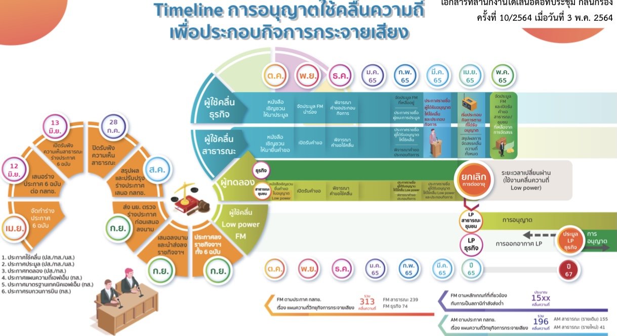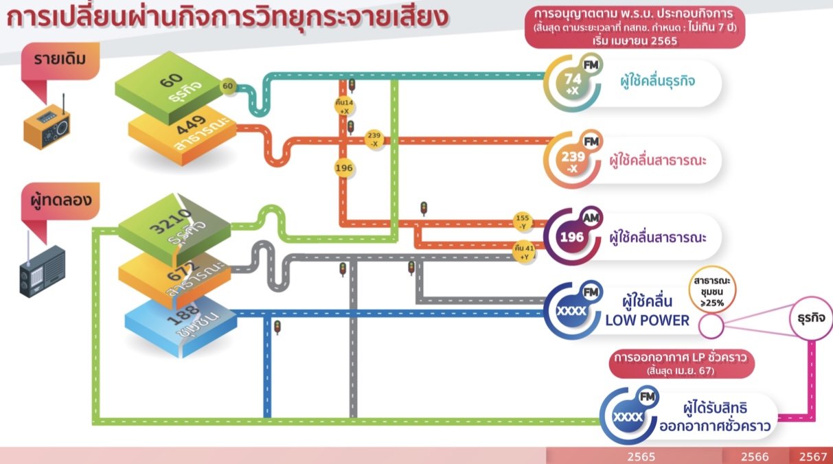 จากกรณีที่สำนักงาน กสทช. ประกาศยุติการทดลองประกอบกิจการวิทยุกระจายเสียง ภายในวันที่ 3 เมษายน 2565 ทำให้สถานีวิทยุท้องถิ่นกว่า 4 พันสถานี ที่มีสถานะเป็นผู้ได้รับอนุญาตทดลองประกอบกิจการวิทยุกระจายเสียง และสถานีหลักเดิม 313 สถานี ต้องเตรียมตัวเปลี่ยนผ่านไปสู่ระบบใบอนุญาต ขณะนี้อยู่ระหว่างร่างประกาศหลักเกณฑ์และวิธีการอนุญาต ซึ่งมีผลผูกพันอนาคตระยะยาว โดยเฉพาะด้านความมั่นคงของประเทศและอุตสาหกรรมวิทยุกระจายเสียง