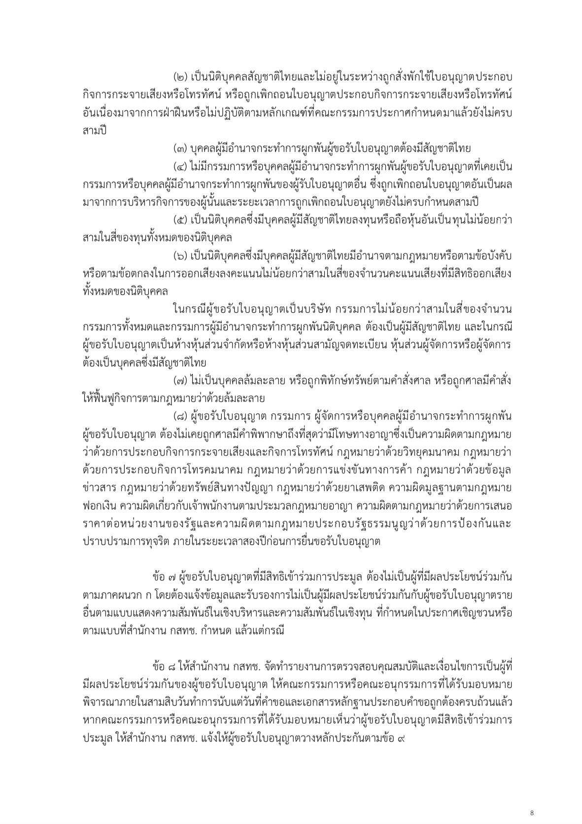 (๘) การชำระค่าธรรมเนียมการขออนุญาตและค่าธรรมเนียมใบอนุญาตให้ใช้คลื่นความถี่ (๙) อายุใบอนุญาต ขอบเขตพื้นที่การให้บริการ