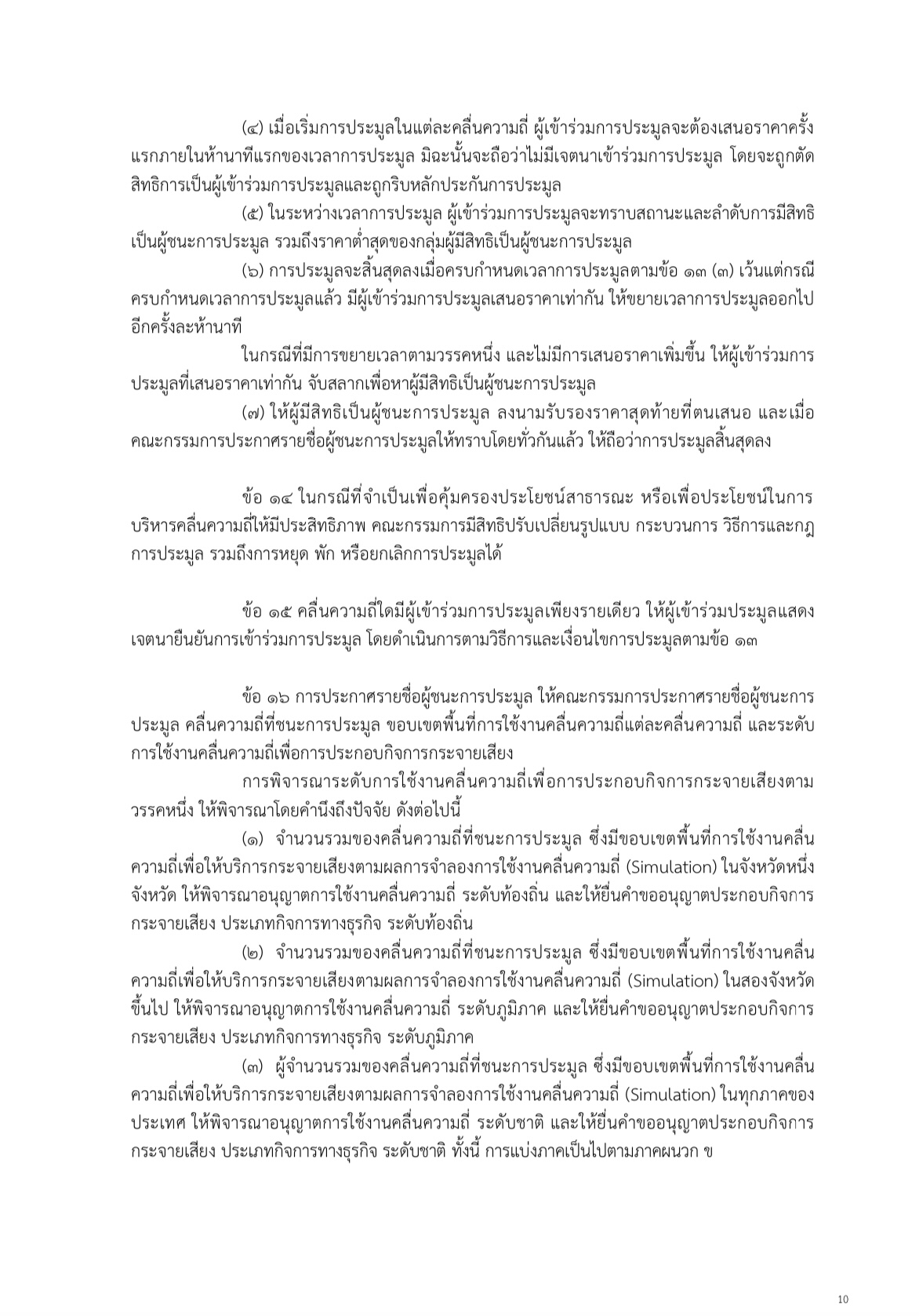 (๒) จำนวนรวมของคลื่นความถี่ที่ชนะการประมูล ซึ่งมีขอบเขตพื้นที่การใช้งานคลื่นความถี่ ในสองจังหวัดขึ้นไป ให้พิจารณาอนุญาตการใช้งานคลื่นความถี่ ระดับภูมิภาค และให้ยื่นคำ ขออนุญาตประกอบกิจการกระจายเสียง ประเภทกิจการทางธุรกิจ ระดับภูมิภาค
