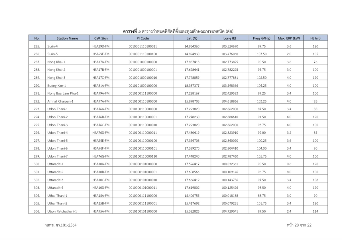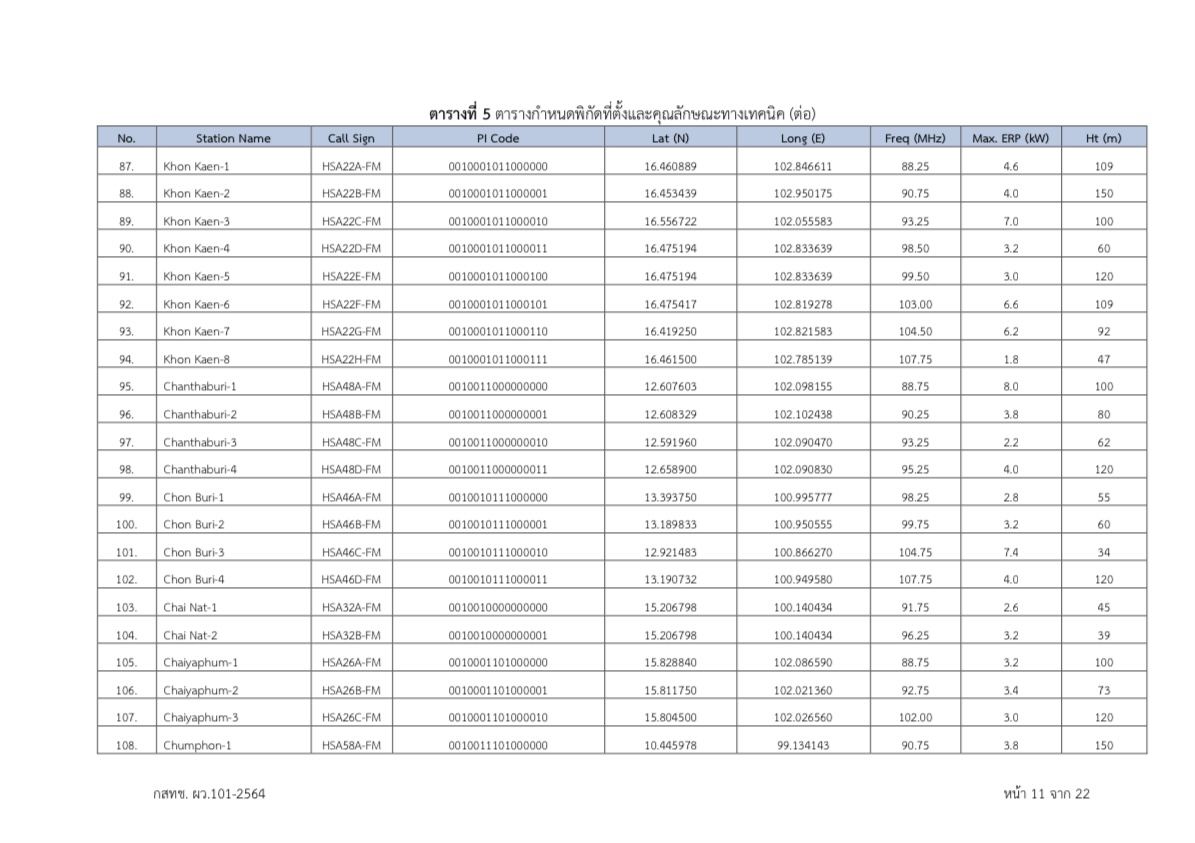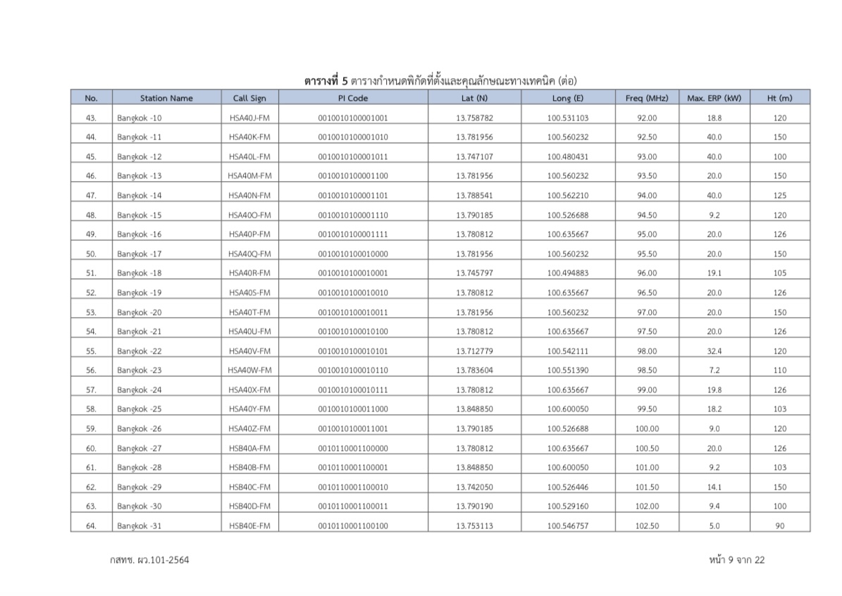 เมื่อวันที่ 29 พฤศจิกายน 2564 เว็บไซต์ ราชกิจจานุเบกษา เผยแพร่ประกาศคณะกรรมการกิจการกระจายเสียง กิจการโทรทัศน์ และกิจการโทรคมนาคมแห่งชาติ เรื่อง แผนความถี่วิทยุกิจการกระจายเสียงระบบเอฟเอ็ม ความว่าโดยที่เป็นการสมควรกำหนดแผนความถี่วิทยุกิจการกระจายเสียงระบบเอฟเอ็ม เพื่อให้มีความเหมาะสมกับความก้าวหน้าของเทคโนโลยีที่เปลี่ยนแปลงไป ป้องกันการรบกวนการใช้คลื่นความถี่ที่อาจจะเกิดขึ้นได้และเกิดการใช้งานคลื่นความถี่อย่างมีประสิทธิภาพ อันจะเป็นประโยชน์ต่อผู้บริโภคและอุตสาหกรรมวิทยุกระจายเสียงในภาพรวม
