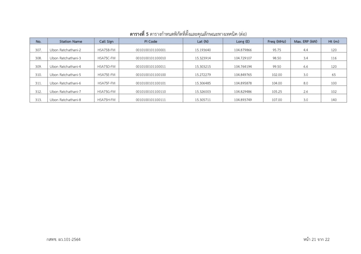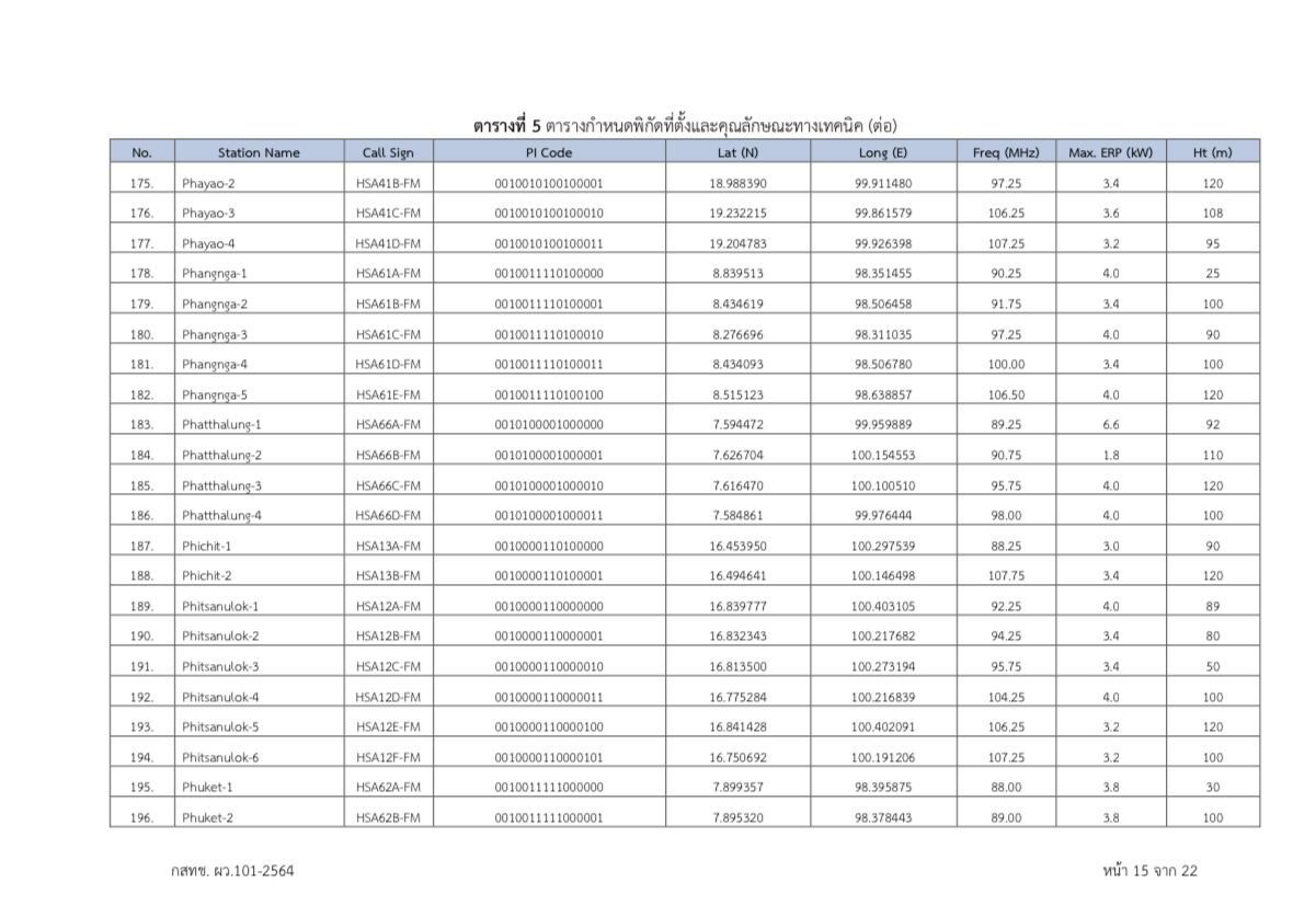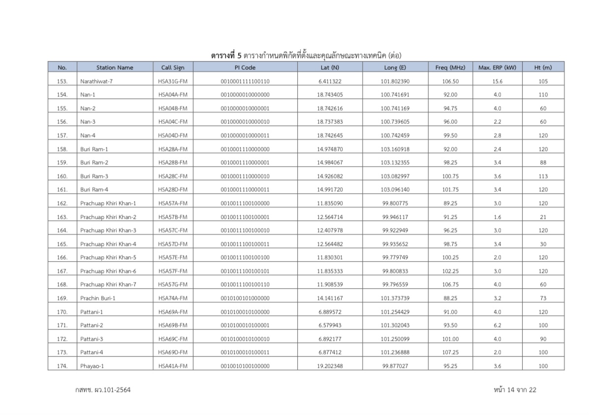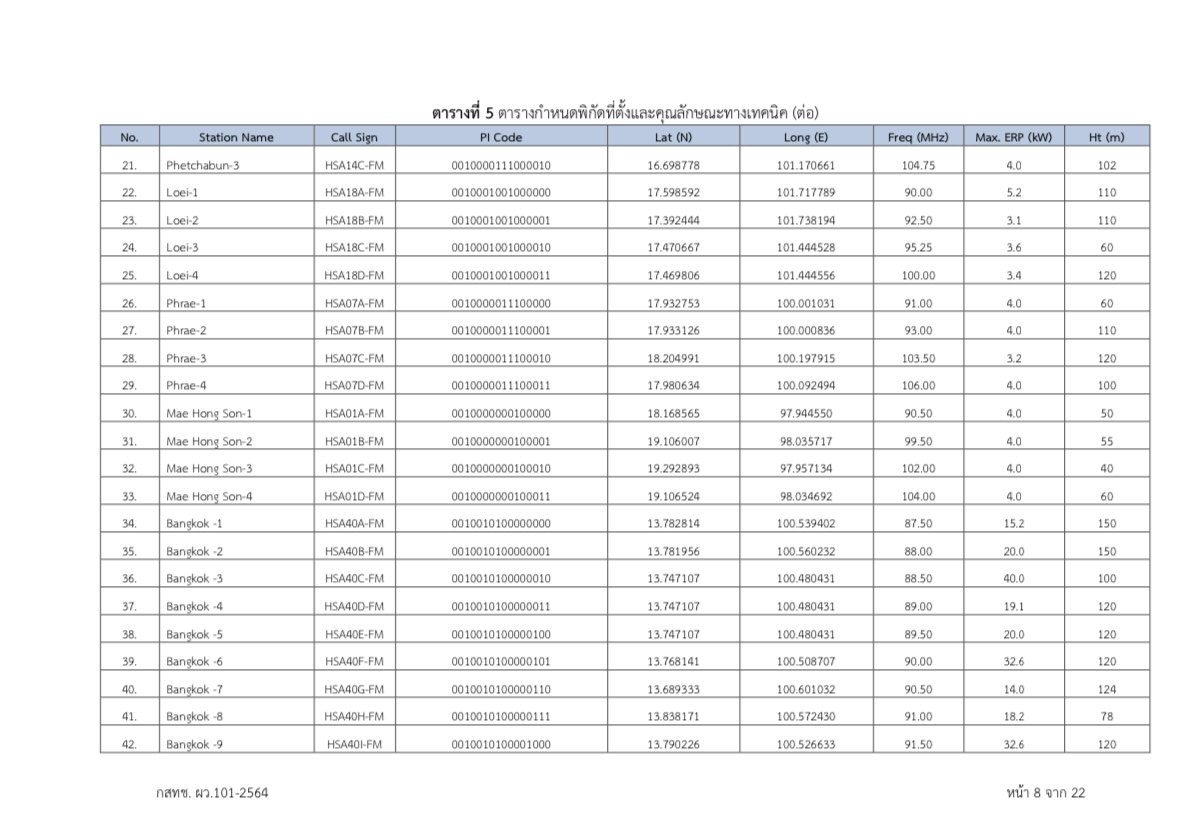 เมื่อวันที่ 29 พฤศจิกายน 2564 เว็บไซต์ ราชกิจจานุเบกษา เผยแพร่ประกาศคณะกรรมการกิจการกระจายเสียง กิจการโทรทัศน์ และกิจการโทรคมนาคมแห่งชาติ เรื่อง แผนความถี่วิทยุกิจการกระจายเสียงระบบเอฟเอ็ม ความว่าโดยที่เป็นการสมควรกำหนดแผนความถี่วิทยุกิจการกระจายเสียงระบบเอฟเอ็ม เพื่อให้มีความเหมาะสมกับความก้าวหน้าของเทคโนโลยีที่เปลี่ยนแปลงไป ป้องกันการรบกวนการใช้คลื่นความถี่ที่อาจจะเกิดขึ้นได้และเกิดการใช้งานคลื่นความถี่อย่างมีประสิทธิภาพ อันจะเป็นประโยชน์ต่อผู้บริโภคและอุตสาหกรรมวิทยุกระจายเสียงในภาพรวม