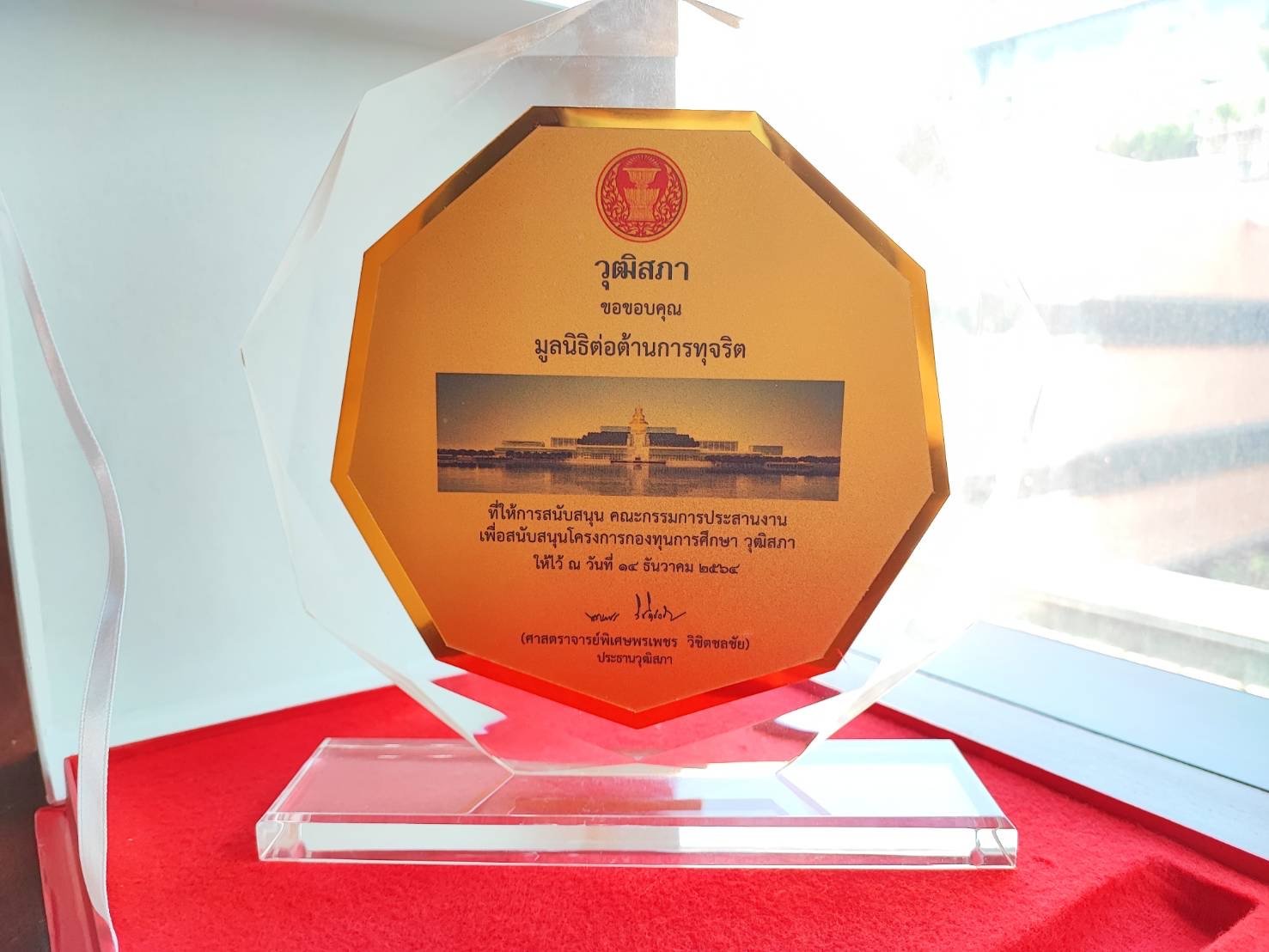 วุฒิสภามอบโล่และประกาศเกียรติคุณให้กับมูลนิธิต่อต้านการทุจริตในฐานะผู้สนับสนุนงาน โครงการกองทุนการศึกษาวุฒิสภา