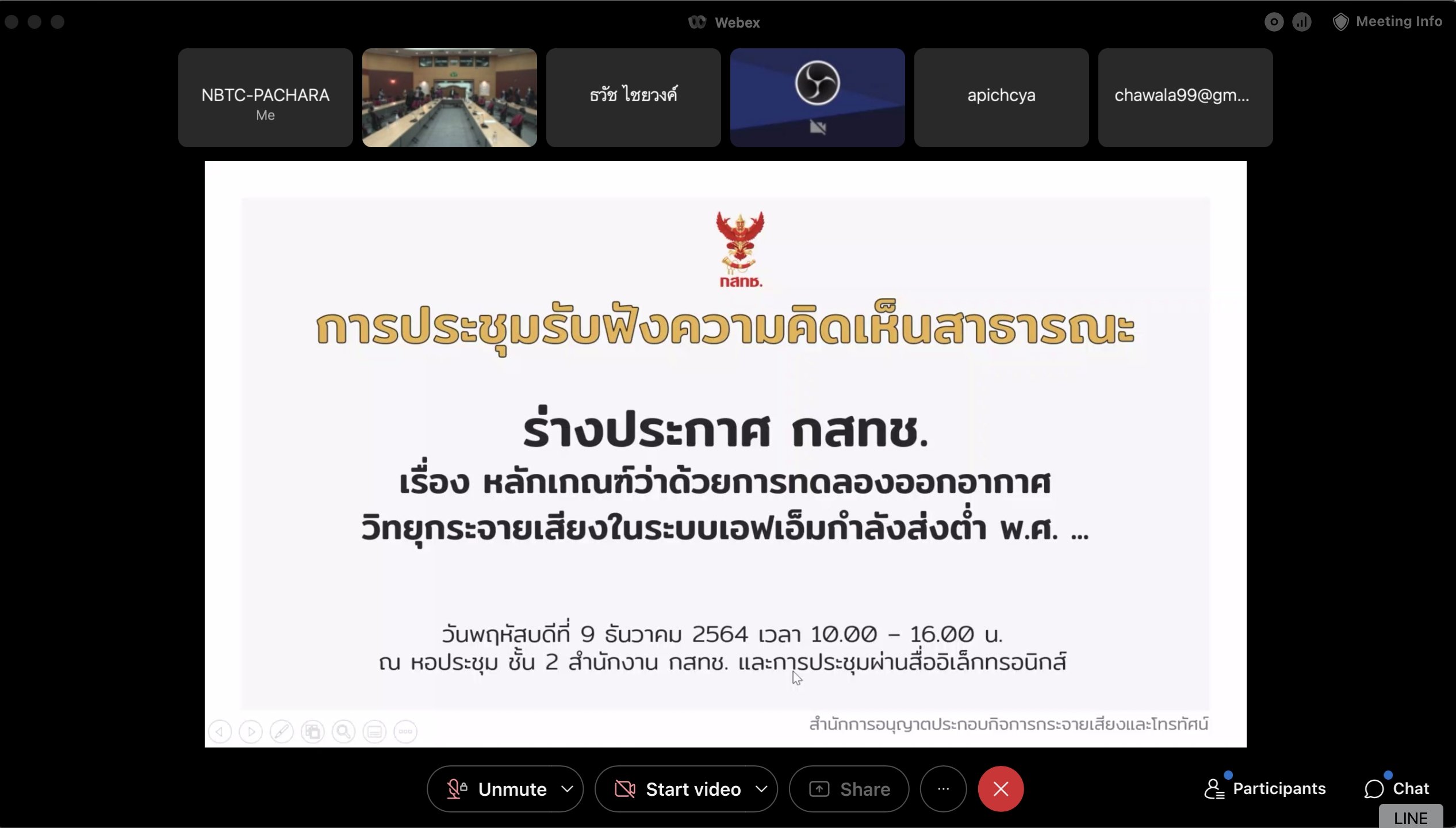 วันที่ 9 ธันวาคม 2564 พันเอก ดร. นที ศุกลรัตน์ รองประธาน กสทช. เป็นประธานเปิดการประชุมรับฟังความคิดเห็นสาธารณะต่อร่างประกาศ กสทช. เรื่อง หลักเกณฑ์ว่าด้วยการทดลองออกอากาศวิทยุกระจายเสียงในระบบเอฟเอ็มกำลังต่ำ พ.ศ. ... ให้กับผู้ที่เกี่ยวข้องกับประกาศดังกล่าว ณ อาคารหอประชุม ชั้น 1, ชั้น 2 และการประชุมผ่านสื่ออิเล็กทรอนิกส์ด้วยระบบ Webex