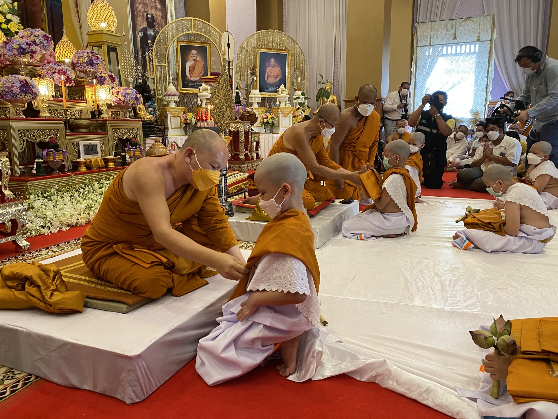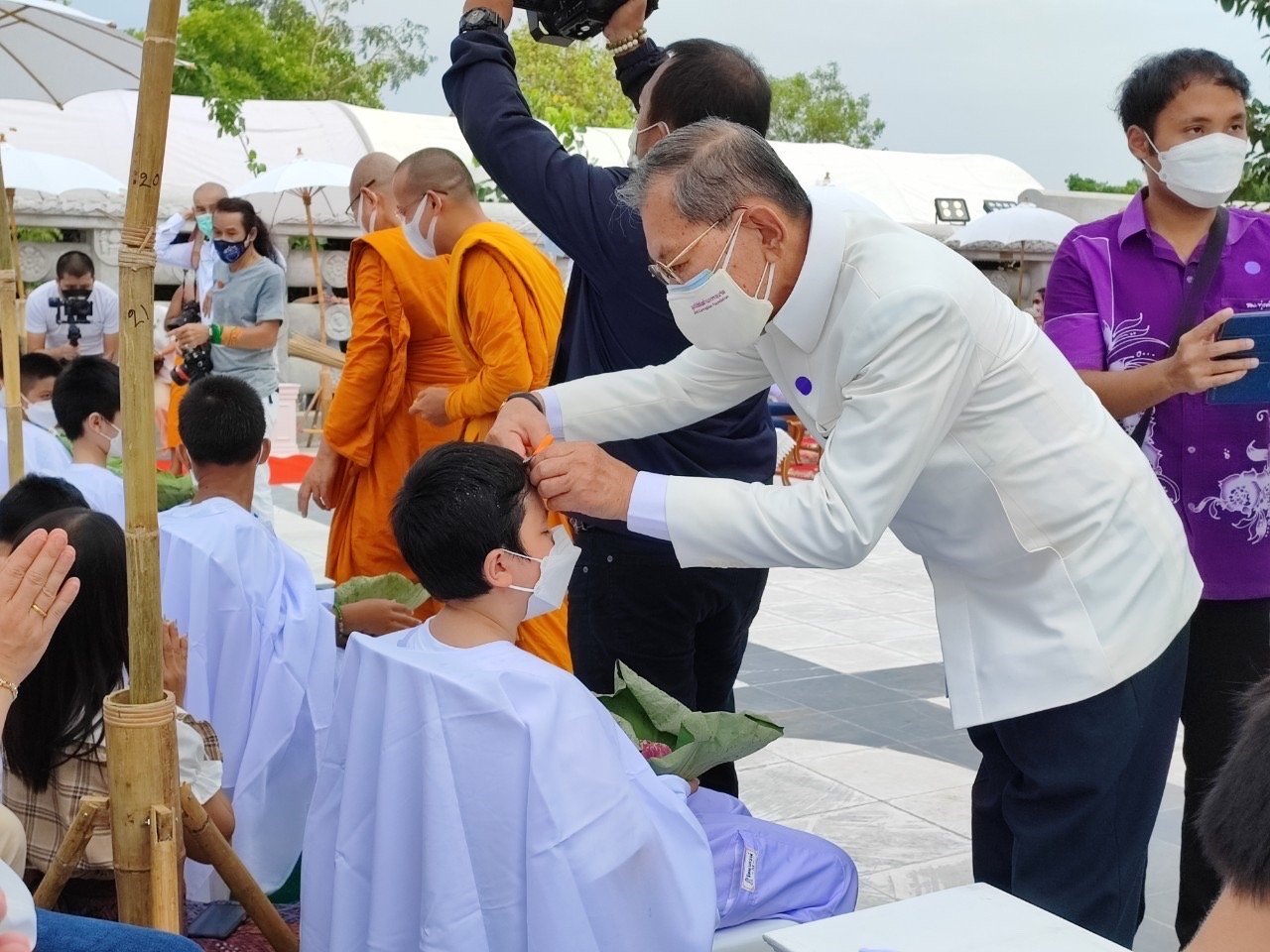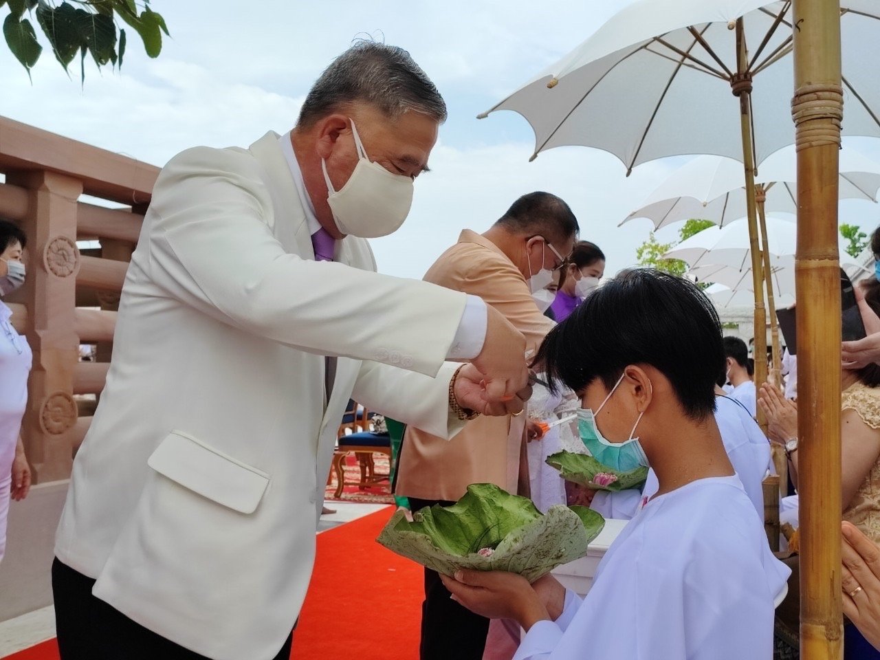 ดร.ประหยัด พวงจำปา รองเลขาธิการคณะกรรมการ ป.ป.ช. ในฐานะรองประธานกรรมการมูลนิธิต่อต้านการทุจริต อ่านหนังสือสำนักพระราชวัง หมายรับสั่งที่ 1255 ลงวันที่ 16 มีนาคม 2565 เรื่อง พระราชทานผ้าไตร 1 ไตร เสร็จแล้วอัญเชิญผ้าไตรเพื่อถวายพระอุปัชฌาย์ คณะนาคกล่าวคำขอศีล เสร็จแล้วคณะสามเณร/แม่ชีน้อย กล่าวคำขอนิสัย และบอกฉายานาม
