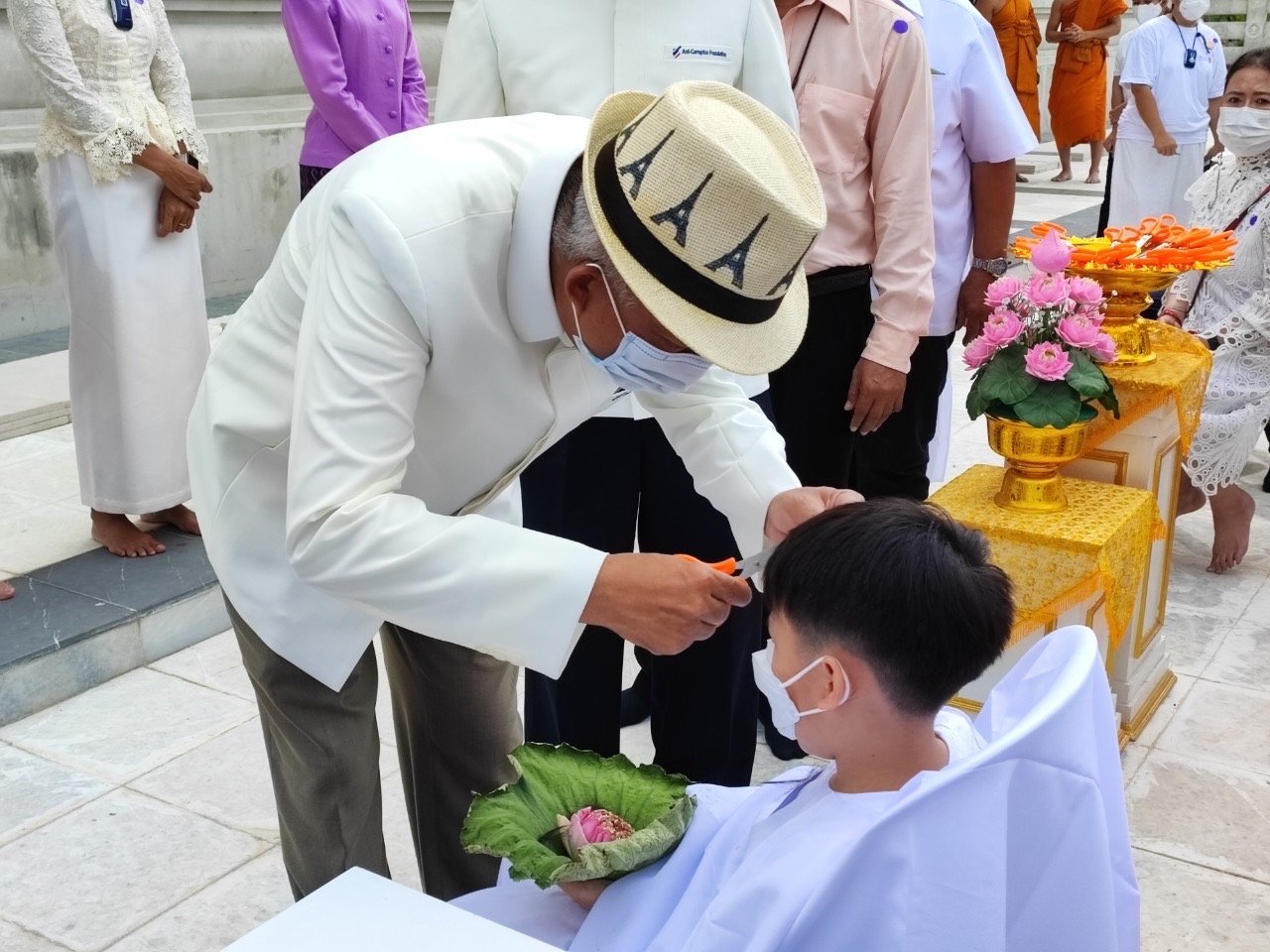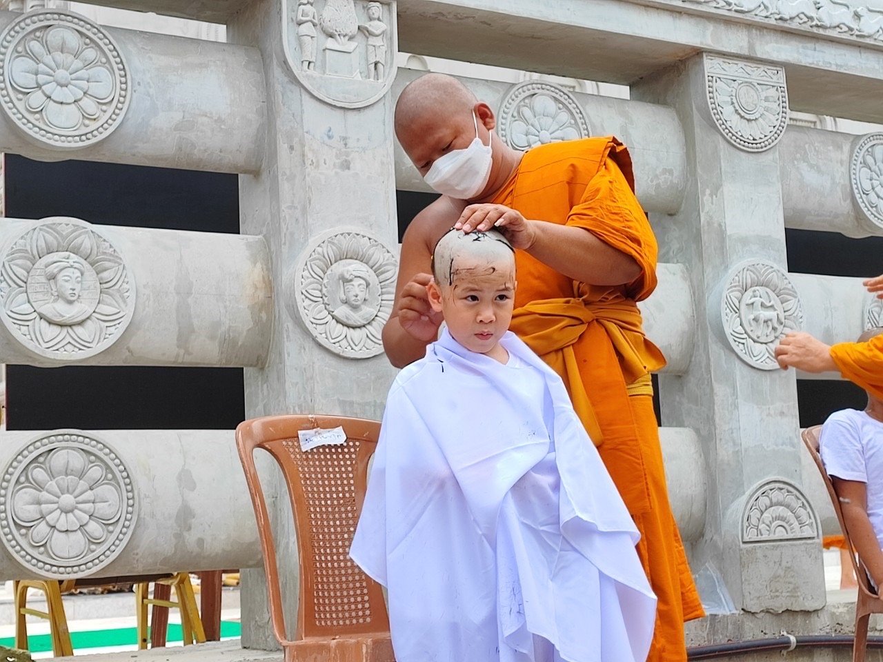 โดยช่วงพิธีปลงผมนาค ได้รับเกียรติจาก พระเดชพระคุณ พระธรรมโพธิวงศ์ (วีรยุทฺโธ) เจ้าอาวาสวัดไทยพุทธคยา หัวหน้าพระธรรมทูต สายประเทศอินเดีย-เนปาล เป็นประธานฝ่ายสงฆ์ จุดธูปเทียนบูชาพระรัตนตรัย นายธนศักดิ์ พรทัพพสาร รองประธานมูลนิธิกล้าธรรม ถวายพานพุ่ม ชุดที่ 1 นางสุภาวดี ทัพพมาลัย กรรมการมูลนิธิกล้าธรรม ถวายพานพุ่ม ชุดที่ 2 ด้านหน้าพระฉายาลักษณ์ ศาสตราจารย์พิเศษ วิชา มหาคุณ ประธานกรรมการมูลนิธิต่อต้านการทุจริต ประธานฝ่ายฆราวาส เปิดกรวยดอกไม้ถวายราชสดุดีเฉลิมพระเกียรติฯ เนื่องในโอกาสวันคล้ายวันพระราชสมภพ สมเด็จพระกนิษฐาธิราชเจ้า กรมสมเด็จพระเทพรัตนราชสุดาฯ สยามบรมราชกุมารี ทรงเจริญพระชนมพรรษา 67 พรรษา เสร็จแล้วถวายเครื่องสักการะ พระเดชพระคุณฯ