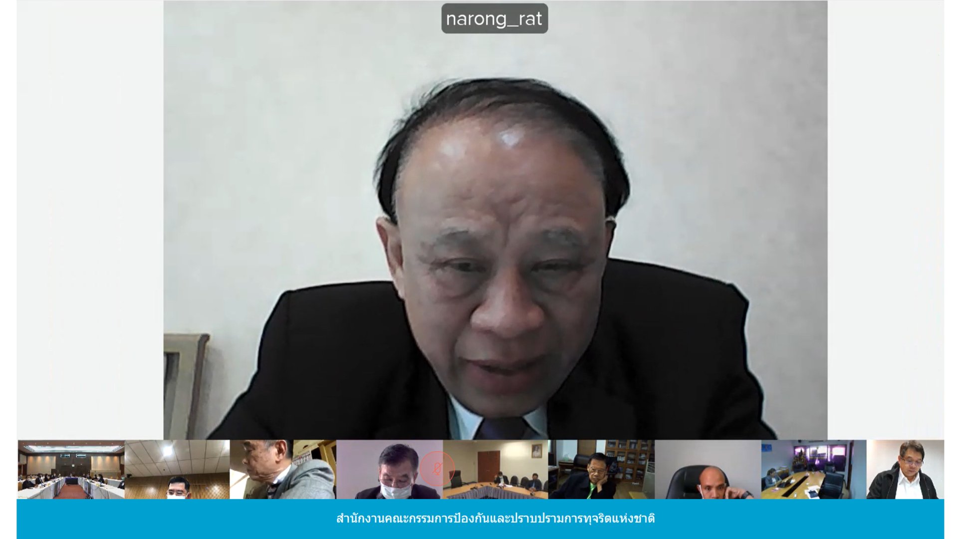 ในการนี้มี นายณรงค์ รัฐอมฤต กรรมการ ป.ป.ช. นายนิวัติไชย เกษมมงคล เลขาธิการคณะกรรมการ ป.ป.ช. นายอุทิศ บัวศรี รองเลขาธิการคณะกรรมการ ป.ป.ช. พร้อมด้วย นายพุฒิพงษ์ เลิศสถิตย์ รองเลขาธิการคณะกรรมการ ป.ป.ท. และคณะกรรมการผู้ทรงคุณวุฒิจากหน่วยงานภายนอก ตลอดจนผู้เกี่ยวข้องเข้าร่วมประชุม ณ ห้องประชุมนนทบุรี 1 ชั้น 3 อาคาร 4 สำนักงาน ป.ป.ช. (สนามบินน้ำ) และระบบประชุมทางไกล (Web Conference)