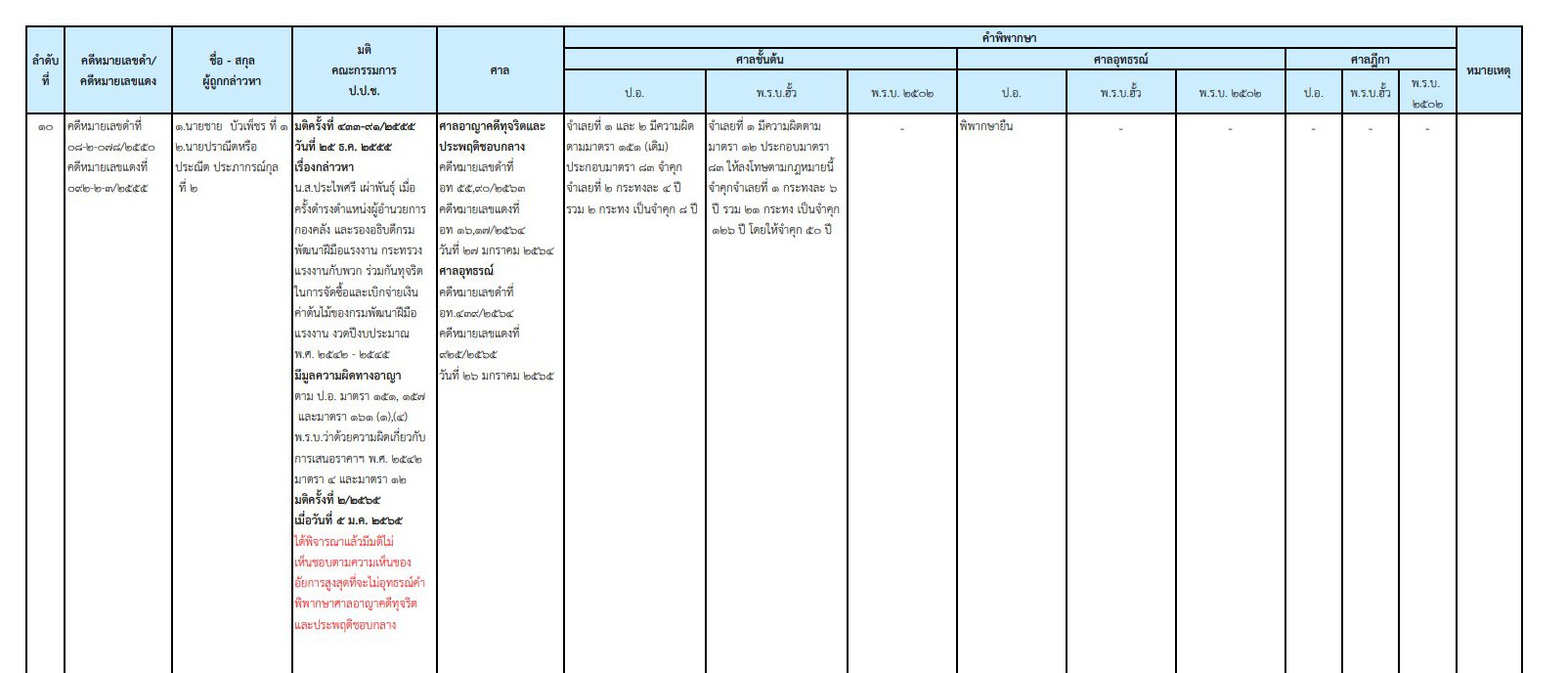 ขณะที่เมื่อวันที่ 4 มีนาคม 2560 ที่ผ่านมา ศาลอาญาคดีทุจริตและประพฤติมิชอบกลาง ได้มีคำพิพากษาให้จำคุก นางประไพศรี เผ่าพันธุ์ อดีตรองอธิบดีกรมพัฒนาฝีมือแรงงาน กระทรวงแรงงาน รวม 49 กระทง กระทงละ 5 ปี รวมทั้งสิ้น 245 ปี ฐานกระทำผิดทุจริตต่อหน้าที่ราชการ และ พ.ร.บ.ว่าด้วยความผิดเกี่ยวกับการเสนอราคาต่อหน่วยงานของรัฐ (ฮั้วประมูล) ในการดำเนินโครงการ จัดซื้อต้นไม้ปรับแต่งภูมิทัศน์และอาคารสถานที่ของกรมพัฒนาฝีมือแรงงาน ระหว่างปีงบประมาณ 2543-2545 จำนวน 201 งานจ้าง เป็นเงินทั้งสิ้น 311,317,086 บาท ซึ่งมีพฤติการณ์ช่วยเหลือเอกชนแห่งหนึ่ง โดยไม่มีการดำเนินการสอบราคาและแข่งขันเสนอราคากันจริง โดยทำเอกสารเท็จของเอกชนรายอื่นมาเป็นหลักฐานแข่งขันเสนอราคาดังกล่าว