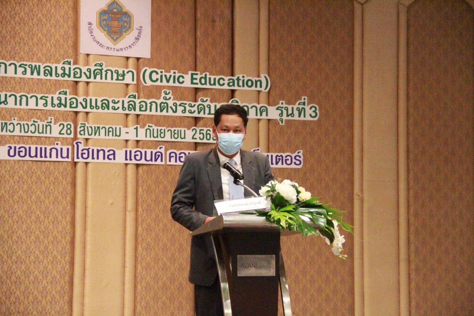 วันที่ 28 สิงหาคม 2565 นายกิตติพงษ์ บริบูรณ์ รองเลขาธิการคณะกรรมการการเลือกตั้ง เป็นประธานในพิธีเปิดอบรมโครงการพลเมืองศึกษา (Civic Education) หลักสูตรการพัฒนาการเมืองและการเลือกตั้งระดับภูมิภาค รุ่นที่ 3 (ภาคตะวันออกเฉียงเหนือ) โดย สำนักพัฒนาบุคลากร สถาบันพัฒนาการเมืองและการเลือกตั้ง ระหว่างวันที่ 28 สิงหาคม – 1 กันยายน 2565 วัตถุประสงค์เพื่อสร้างความรู้ ความเข้าใจ แก่ประชาชนเกี่ยวกับการปกครองระบอบประชาธิปไตย อันมีพระมหากษัตริย์ทรงเป็นประมุข โดยมีผู้เข้ารับการอบรม ประกอบด้วย ผู้บริหารท้องถิ่น สมาชิกสภาท้องถิ่น หัวหน้าหน่วยงานภาครัฐ ผู้บริหารสถาบันการศึกษา ผู้บริหารภาคเอกชน องค์กรเอกชน ตัวแทนพรรค การเมือง สมาชิกพรรคการเมือง นักวิชาการ สื่อมวลชน และภาคประชาชนที่สนใจ จำนวน 19 จังหวัด รวมจำนวนทั้งสิ้น 98 คน ณ โรงแรมอวานี ขอนแก่น โฮเทล แอนด์ คอนเวนชัน เซ็นเตอร์ จังหวัดขอนแก่น
