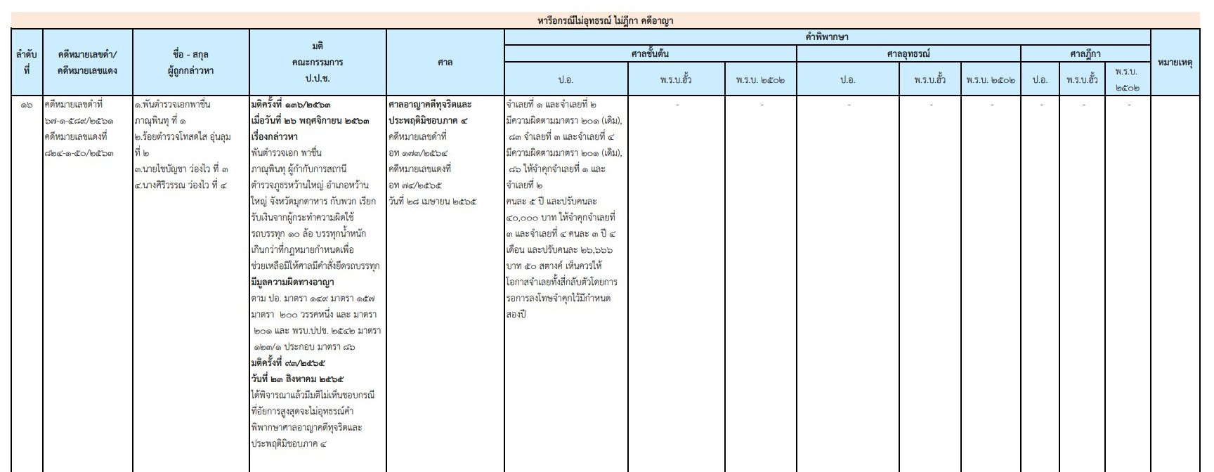 เผยแพร่ความคืบหน้าคดีกล่าวหา 'พ.ต.อ.พาชื่น ภาณุพินทุ' อดีต ผกก.สภ.หว้านใหญ่ มุกดาหาร -พวก เรียกเงินช่วยเหลือไม่ให้ศาลยึดรถ 10 ล้อ ล่าสุด ศาลอาญาคดีทุจริตประพฤติมิชอบภาค 4 พิพากษาลงโทษจำคุก 5 ปี- อีก 2 ราย โดน 3 ปี 4 เดือน 2 คน แต่ได้รอลงอาญาทั้งหมด - ป.ป.ช.ค้าน อสส.ไม่อุทธรณ์สู้