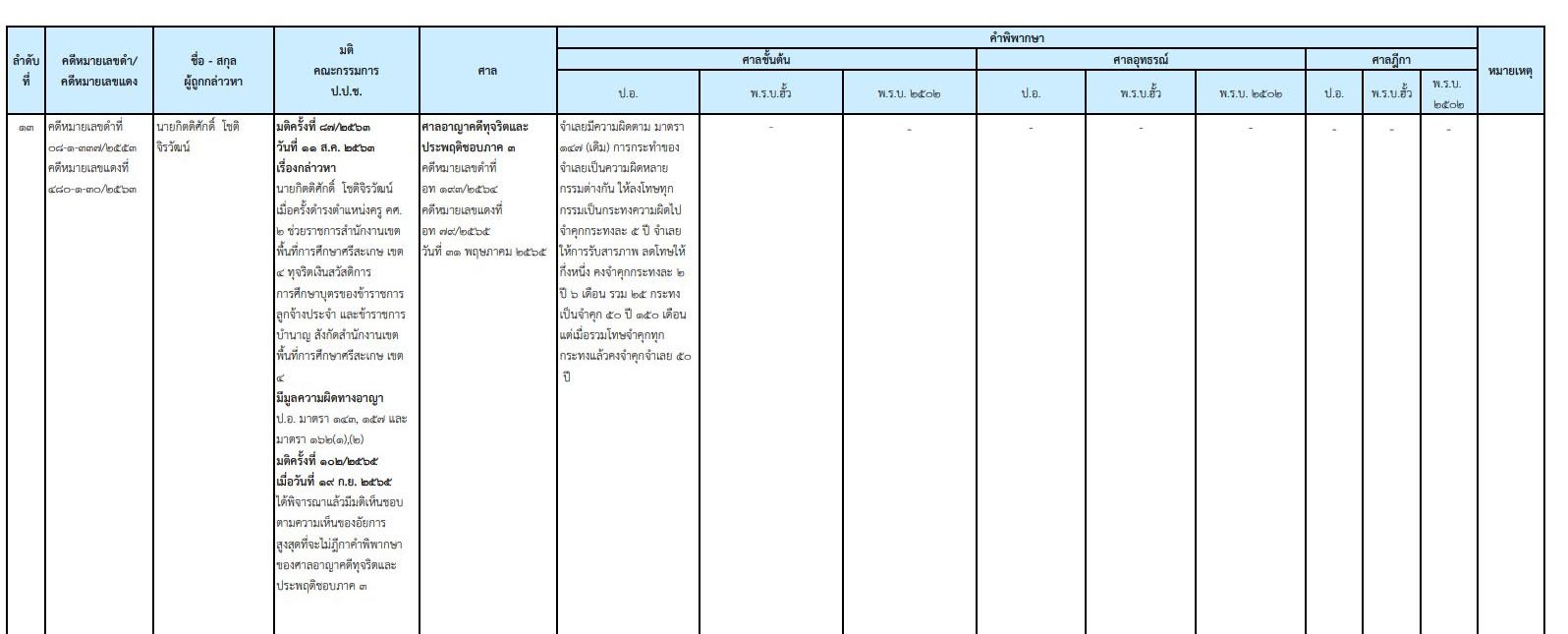 ป.ป.ช.เผยแพร่ความคืบหน้าคดีกล่าวหา 'กิตติศักดิ์ โชติจิรวัฒน์' อดีตครู ค.ศ.2 ศรีสะเกษ ทุจริตเงินสวัสดิการการศึกษาบุตรข้าราชการ ล่าสุด ศาลอาญาคดีทุจริตประพฤติมิชอบภาค 3 พิพากษา ลงโทษ จำคุก 50 ปี 150 เดือน แต่ติดจริง 50