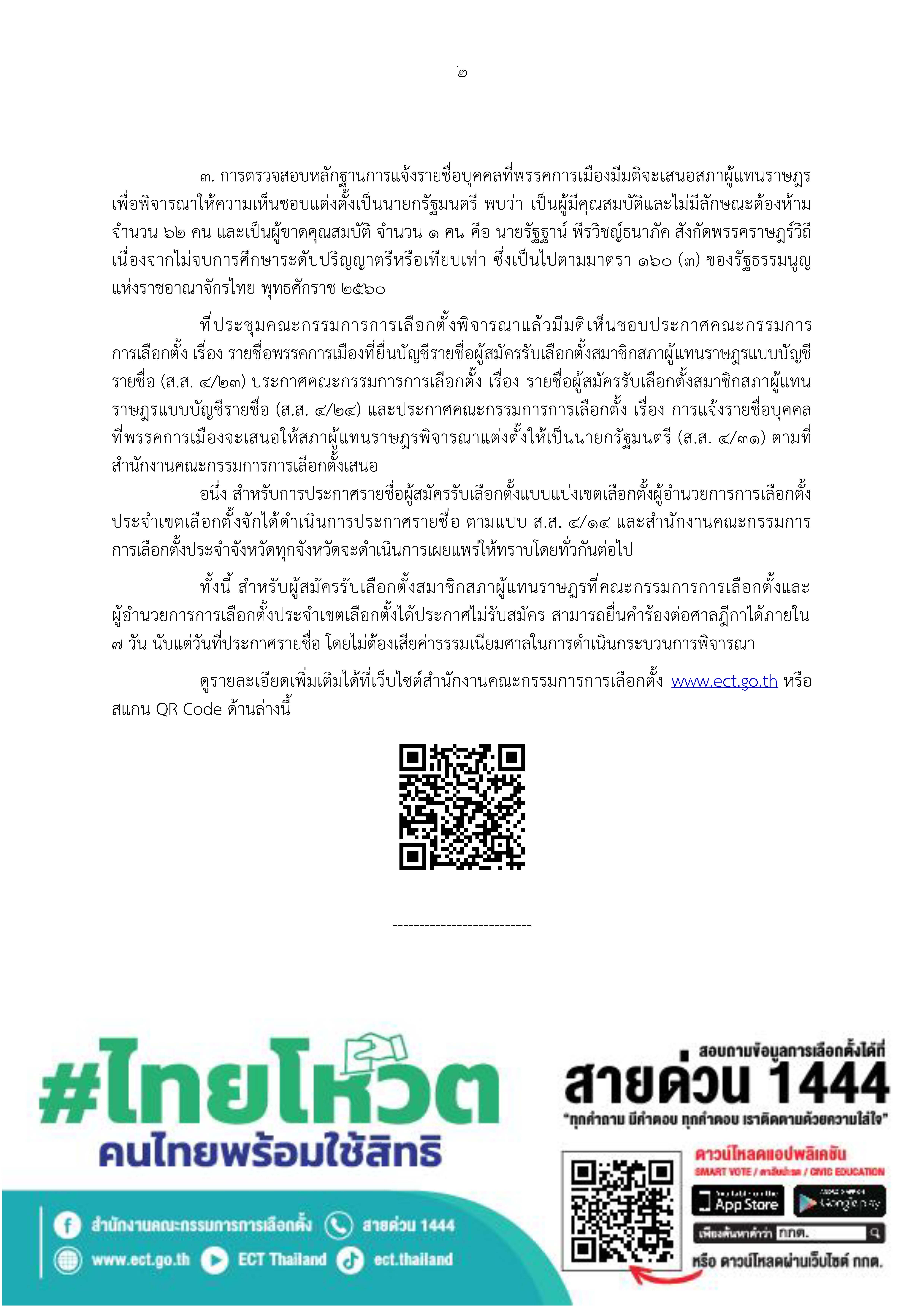 ดาวน์โหลดต้นฉบับ : ประกาศรายชื่อผู้สมัครรับเลือกตั้งสมาชิกสภาผู้แทนราษฎรแบบบัญชีรายชื่อ