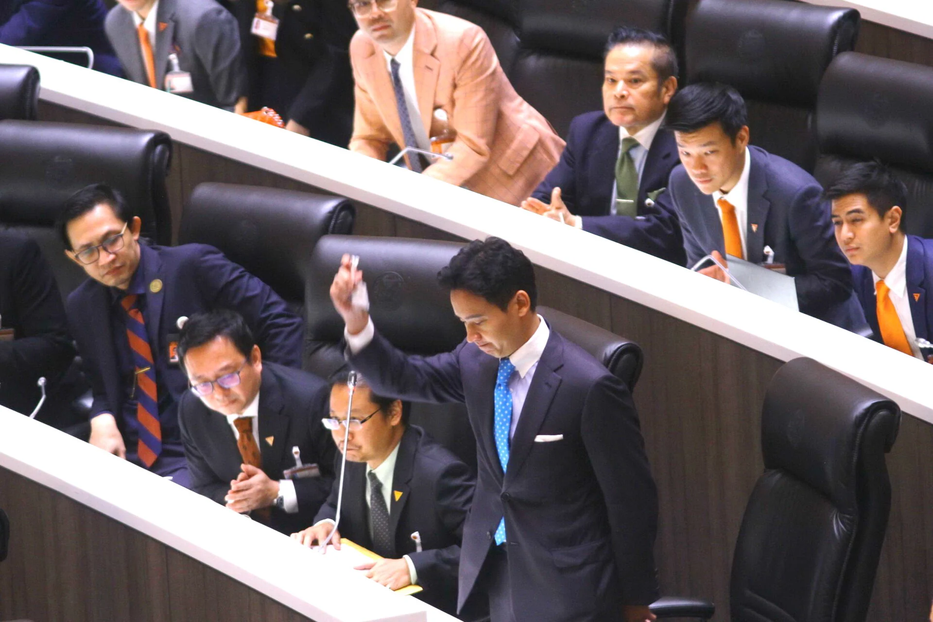 เวลา 14.43 น. แคนดิเดตนายกรัฐมนตรีของพรรคก้าวไกลในวัย 42 ปี ได้ลุกขึ้นกลางสภา พร้อมกล่าวว่า ณ ปัจจุบันนี้มีเอกสารศาลรัฐธรรมนูญมีคำสั่งให้หยุดปฏิบัติหน้าที่ เพราะฉะนั้นจึงขออนุญาตพูดกับท่านประธานว่ารับทราบคำสั่ง และจะปฏิบัติตามคำสั่งจนกว่าจะมีคำวินิจฉัยเป็นอื่น