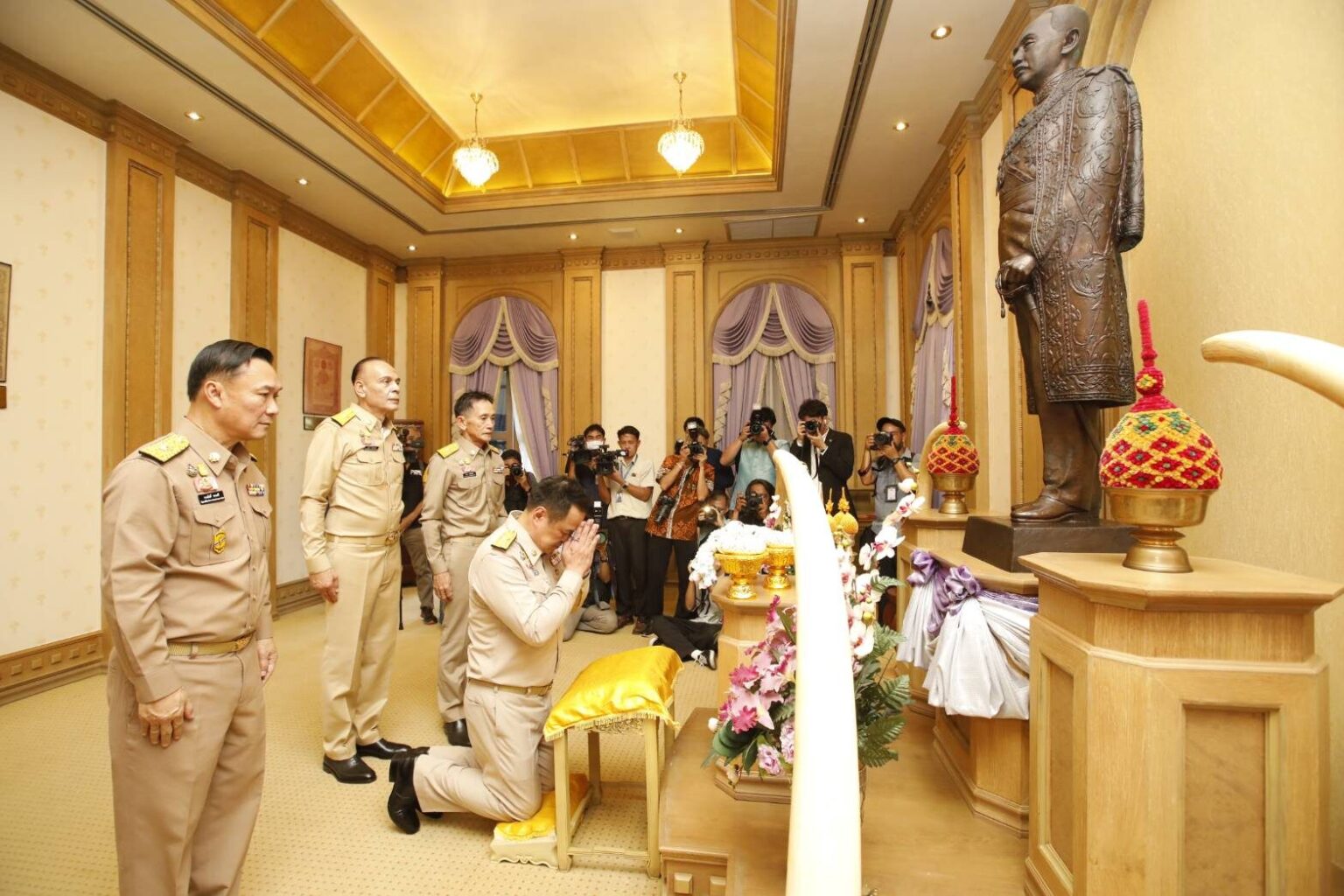 จากนั้น เวลา 09.46 น. เข้าสักการะศาลพระไชยมงคล ศาลพระกาฬไชยศรี พระอนุสาวรีย์สมเด็จพระเจ้าบรมวงศ์เธอ กรมพระยาดำรงราชานุภาพ แล้วเดินขึ้นบันได เพื่อสักการะพระรูป สมเด็จพระเจ้าบรมวงศ์เธอ กรมพระยาดำรงราชานุภาพ แล้วเดินขึ้น ชั้น 2 เพื่อถวายสักการะ พระรูปสมเด็จพระเจ้าบรมวงศ์เธอ กรมพระยาดำรงราชานุภาพ ภายในพิพิธภัณฑ์ดำรงราชานุภาพ แล้วเข้าถวายสักการะ พระบรมรูป พระบาทสมเด็จพระจอมเกล้าเจ้าอยู่หัว และพระบรมรูป พระบาทสมเด็จพระจุลจอมเกล้าเจ้าอยู่หัว และสักการะสิ่งศักดิ์สิทธิ์ประจำห้องปฏิบัติงาน และพบปะแนะนำตัวกับข้าราชการ ณ ห้องประชุมราชสีห์ ศาลาว่าการกระทรวงมหาดไทย