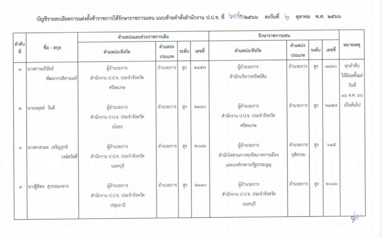ทุกลำดับให้มีผลตั้งแต่วันที่ 16 ตุลาคม 2566 เป็นต้นไป