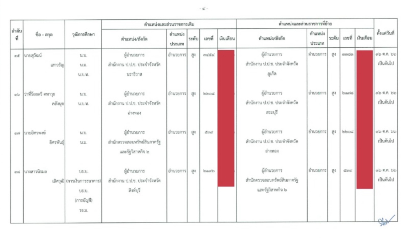 4.ย้ายนายหิรัญ ไชยกันยา ผู้อำนวยการสํานักงาน ป.ป.ช. ประจําจังหวัดสระแก้วไปเป็นผู้อำนวยการสำนักงาน ป.ป.ช.ประจำจังหวัดบุรีรัมย์
