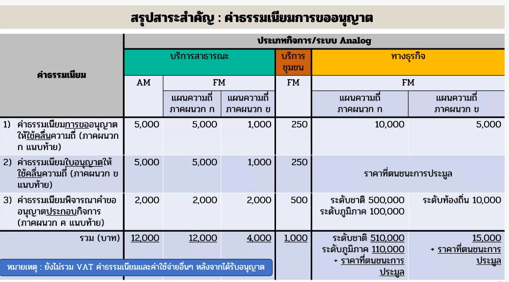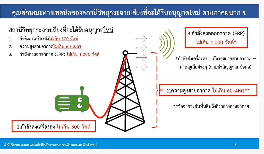 1. (ร่าง) ประกาศ กสทช. เรื่อง หลักเกณฑ์และวิธีการอนุญาตให้ใช้คลื่นความถี่สำหรับหรับการให้บริการกระจายเสียง (ฉบับที่ 2) โดยมีการปรับปรุงกระบวนการยื่นคำขออนุญาตการใช้คลื่นความถี่และประกอบกิจการกระจายเสียงให้มีความสะดวกมากขึ้น ลดความซ้ำซ้อนของเอกสาร เพื่อให้ได้รับใบอนุญาตถูกต้องเป็นระยะเวลา 5 ปี โดยกรณีประเภทชุมชนและสาธารณะจะใช้วิธีคัดเลือกโดยเปรียบเทียมคุณสมบัติ และประเภทธุรกิจต้องใช้วิธีประมูลตามที่กฎหมายกำหนด อย่างไรก็ตามได้ปรับลดลงค่าธรรมเนียมให้ถูกลงเมื่อเทียบกับกรณีการทดลองออกอากาศปัจจุบัน