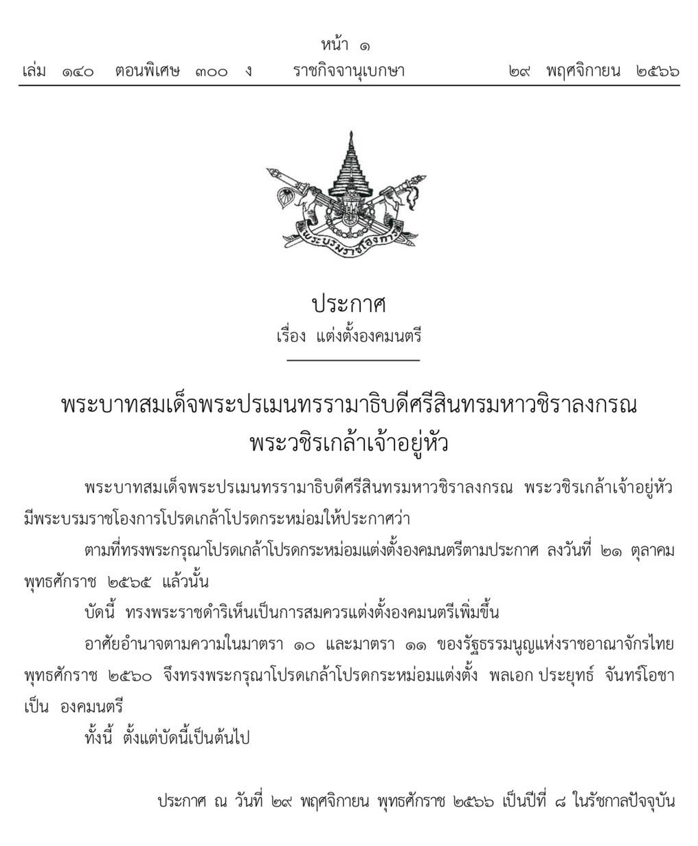 ประกาศ ณ วันที่ 29 พฤศจิกายน พุทธศักราช 2566 เป็นปีที่ 8 ในรัชกาลปัจจุบัน