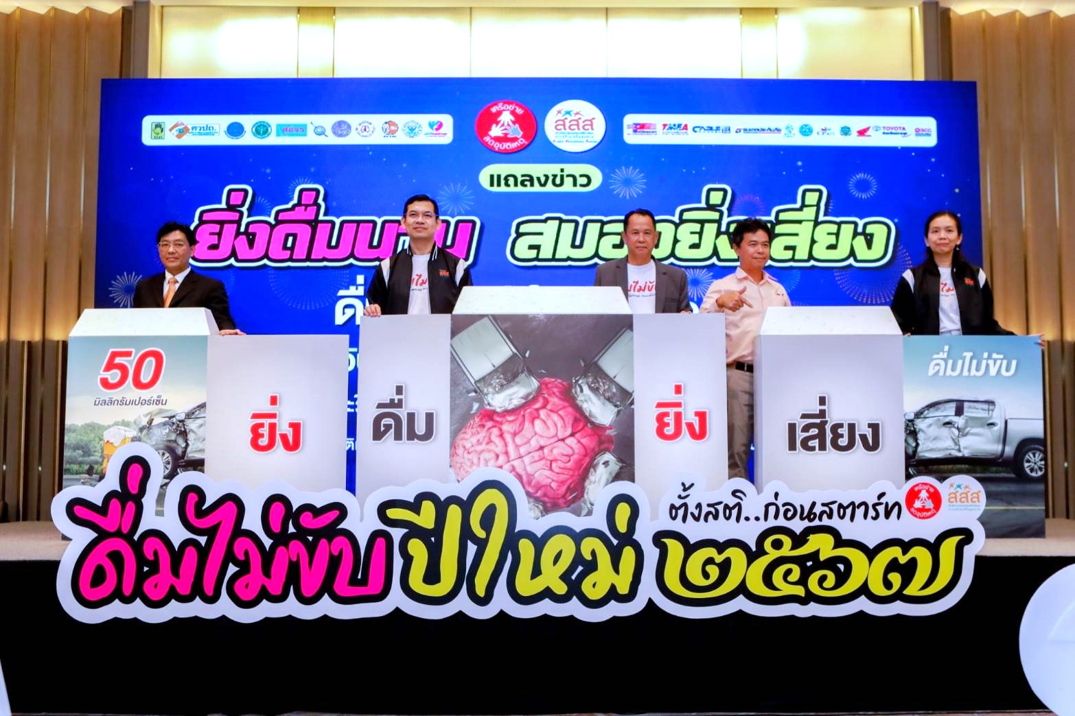 เมื่อวันที่ 19 ธันวาคม2566 สำนักงานกองทุนสนับสนุนการสร้างเสริมสุขภาพ (สสส.) ร่วมกับ สำนักงานเครือข่ายลดอุบัติเหตุ (สคอ.) และภาคีเครือข่าย แถลงข่าว “ยิ่งดื่มนาน สมองยิ่งเสี่ยง ดื่มไม่ขับ” ปีใหม่ 2567 เน้นย้ำรณรงค์ช่วงเทศกาลสำคัญ ดร.นพ.ไพโรจน์ เสาน่วม ผู้ช่วยผู้จัดการกองทุน สสส. กล่าวว่า “ดื่มแล้วขับ” เป็นสาเหตุหลักของอุบัติเหตุทางถนน โดยเฉพาะช่วงเทศกาลผลการตรวจแอลกอฮอล์ในเลือดของกลุ่มผู้ประสบอุบัติเหตุทางถนน พบว่า มากกว่า 50% พบแอลกอฮอล์ในเลือด ดื่มไม่ขับ และลดใช้ความเร็ว เป็นเรื่องที่ทุกคนป้องกันได้ เพื่อฉลองปีใหม่นี้อย่างปลอดภัย และมีความสุข สสส. ได้ผลิตสปอตโฆษณา 2 เรื่อง รณรงค์ให้ผู้ขับขี่ตระหนักถึงอันตราย ลด ละ เลิกพฤติกรรมดื่มแล้วขับ ขับขี่อย่างปลอดภัย ไม่ประมาท ให้เห็นผลเสียของแอลกอฮอล์ต่อการขับขี่ที่ผลกระทบต่อสมอง และส่งผลต่อการขับขี่ จึงได้พัฒนาแคมเปญ ดื่มไม่ขับ : ดื่มเหล้าเมาถึงสมอง สื่อสารผลเสียของแอลกอฮอล์ ที่ส่งผลต่อสมอง ทำให้ตอบสนองช้าลง ตัดสินใจเบรกรถไม่ทัน และกะระยะในการขับขี่ผิดพลาด
