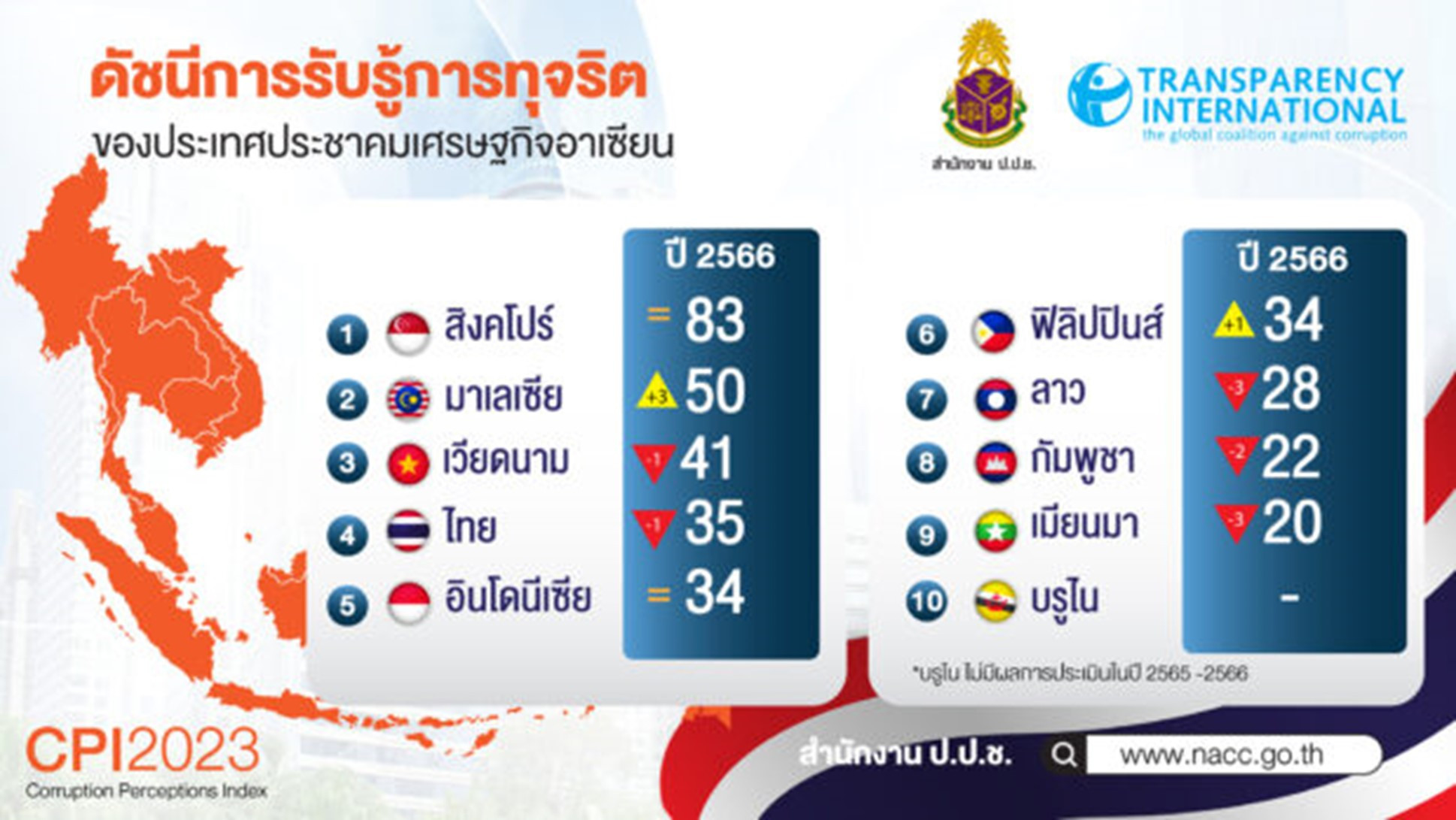 สอดรับกับข้อสังเกต สำหรับรายงานผลการจัดอันดับความโปร่งใส Corruption Perception Index(CPI) 2023 หรือ ดัชนีชี้วัดภาพลักษณ์คอร์รัปชันปี 2566 นั้น Transparency International แสดงให้เห็นว่า