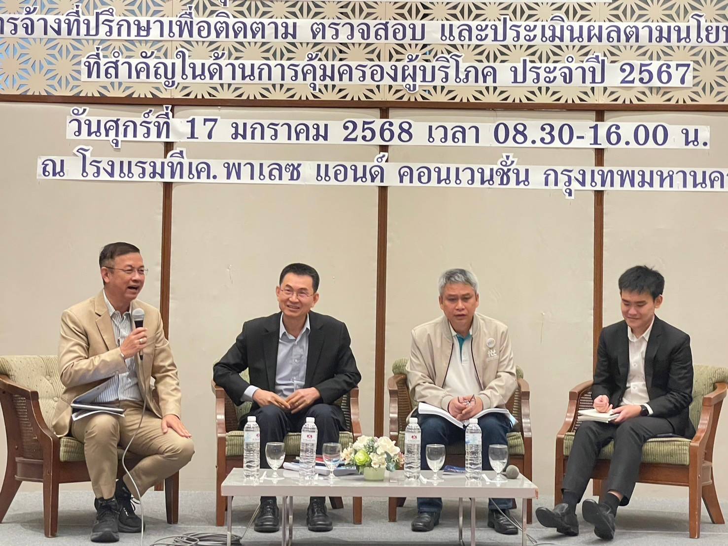 เมื่อวันที่ 17 มกราคม 2568 ที่โรงแรมทีเค พาเลช แอนด์คอนเวนชั่น กรุงเทพมหานคร โดย นายสุทนต์ กล้าการขาย สมาชิกวุฒิสภา (สว.) และประธานคณะอนุกรรมาธิการกิจการกระจายเสียง กิจการโทรทัศน์ และกิจการ โทรคมนาคม เป็นประธานเปิดการประชุม โดยนางสาวอารีวรรณ จตุทอง กรรมการติดตามและประเมินผลการปฏิบัติงาน (กตป.) ด้านการคุ้มครองผู้บริโภค กล่าวต้อนรับผู้เข้าร่วมประชุม ผู้ช่วยศาสตราจารย์ ดร.จุมพล ชื่นจิตต์ศิริ รองอธิการบดีฝ่ายกฎหมายและบริการวิชาการ มหาวิทยาลัยสงขลานครินทร์ ดำเนินการจัดประชุมพร้อมด้วยคณะที่ปรึกษาโครงการจ้างที่ปรึกษาติดตาม ตรวจสอบ และประเมินผลตามนโยบาย กสทช. ที่สำคัญในด้านการคุ้มครองผู้บริโภค ประจำปี 2567 ดำเนินการตาม พ.ร.บ. องค์กรจัดสรรคลื่นความถี่และกำกับการประกอบกิจการวิทยุกระจายเสียง วิทยุโทรทัศน์ และกิจการโทรคมนาคม พ.ศ. 2553 และที่แก้ไขเพิ่มเติม ซึ่งกำหนดให้มีคณะกรรมการติดตามและประเมินผลการปฏิบัติงาน (กตป.) มีอำนาจหน้าที่ในการติดตาม ตรวจสอบ และประเมินผลการดำเนินการและบริหารงานของ กสทช. สำนักงาน กสทช. และเลขาธิการ กสทช. เป็นประจำทุกปี โดยในปี 2567 กรรมการติดตามและประเมินผลการปฏิบัติงาน ด้านการคุ้มครองผู้บริโภค ได้กำหนดนโยบายที่สำคัญด้านการคุ้มครองผู้บริโภคที่ต้องติดตาม ตรวจสอบ และประเมินผล พร้อมนำเสนอข้อมูล การติดตาม ตรวจสอบ และประเมินผล เงื่อนไขหรือมาตรการเฉพาะ ภายหลังการรวมธุรกิจระหว่างบริษัท แอดวานซ์ ไวร์เลส เน็ทเวอร์ค จำกัด [AWN] และบริษัท ทริปเปิลที บรอดแบนด์ จำกัด (มหาชน) หรือ [3BB] เพื่อการคุ้มครองผู้บริโภค และ การติดตาม ตรวจสอบ และประเมินผลการสนับสนุน ส่งเสริม และคุ้มครองผู้บริโภคของกองทุนวิจัยและพัฒนากิจการวิทยุกระจายเสียง วิทยุโทรทัศน์ และกิจการโทรคมนาคม เพื่อประโยชน์สาธารณะ (กทปส.)