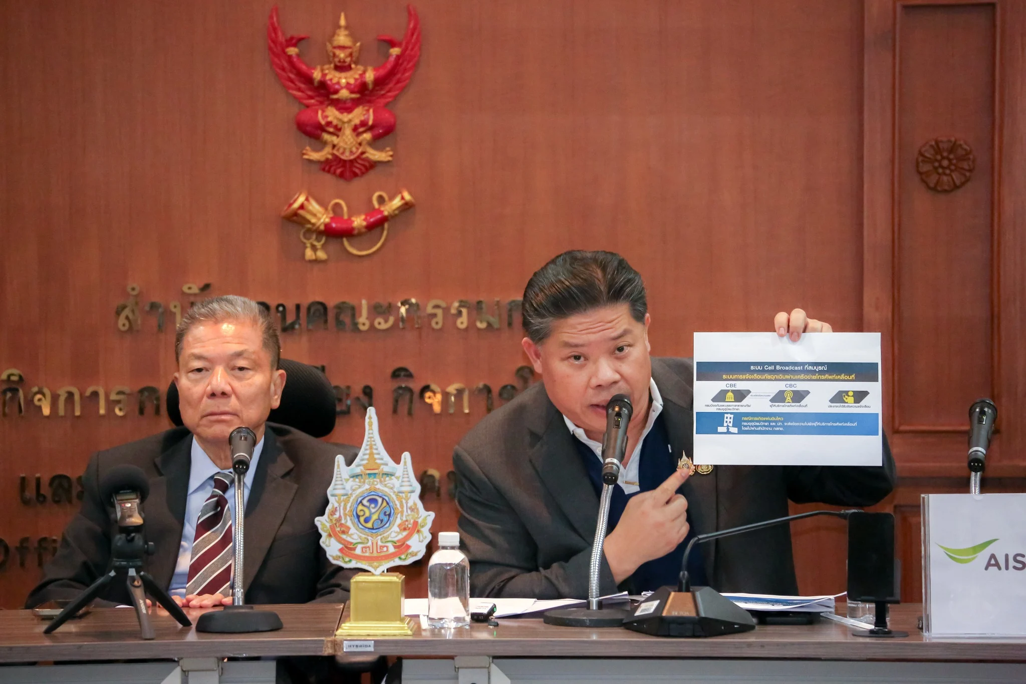 • ผู้ประกอบการโทรคมนาคม ได้แก่ บริษัท แอดวานซ์ ไวร์เลส เน็ทเวอร์ค จำกัด บริษัท ทรู มูฟ เอช ยูนิเวอร์แซล คอมมิวนิเคชั่น จำกัด และบริษัท โทรคมนาคมแห่งชาติ จำกัด (มหาชน) จะเป็นผู้ดำเนินการในส่วนของ Cell Broadcast Center (CBC) ทำหน้าที่นำเนื้อหาข้อความส่งต่อไปยังเสาส่งสัญญาณในพื้นที่ประสบภัย